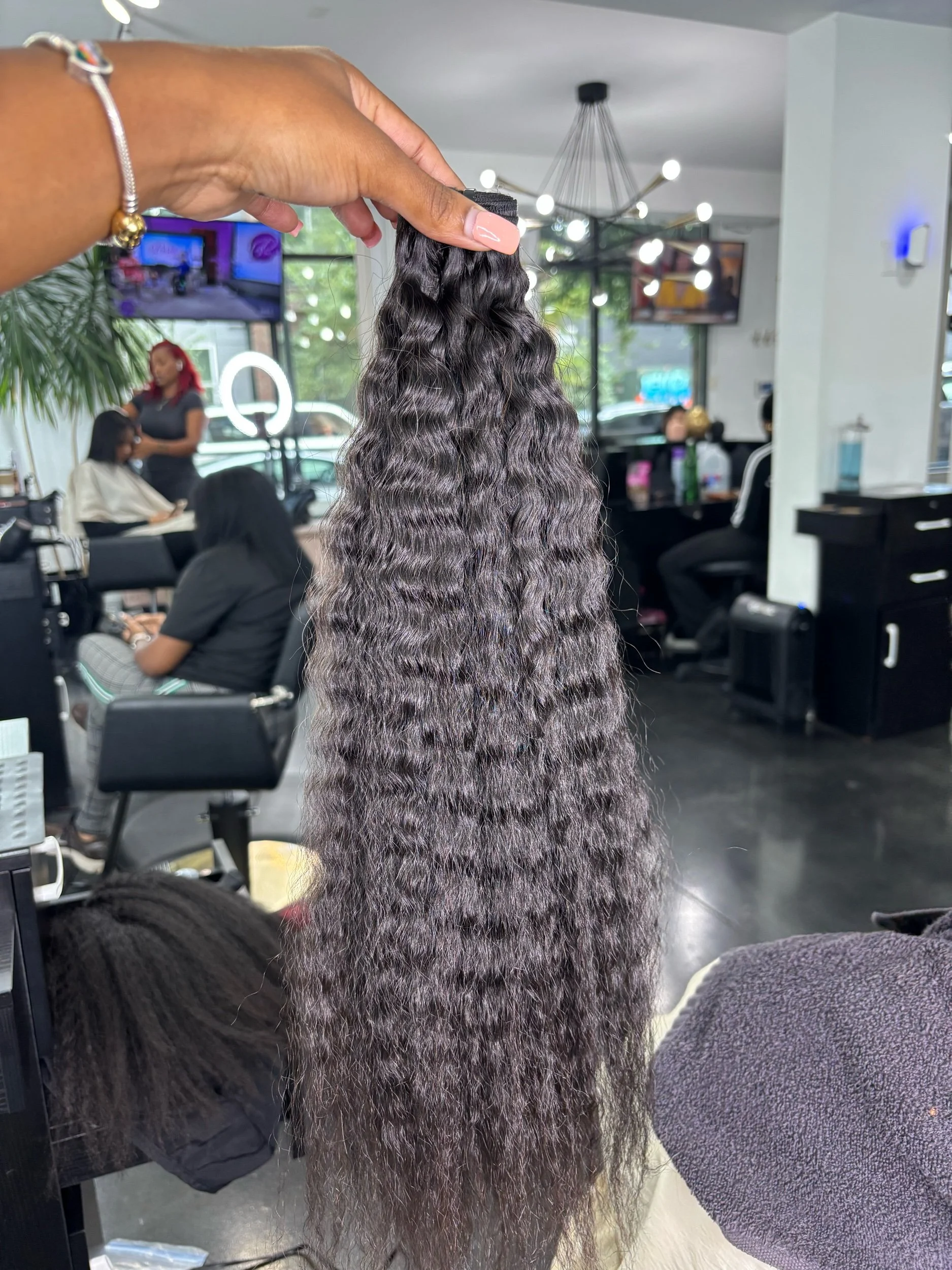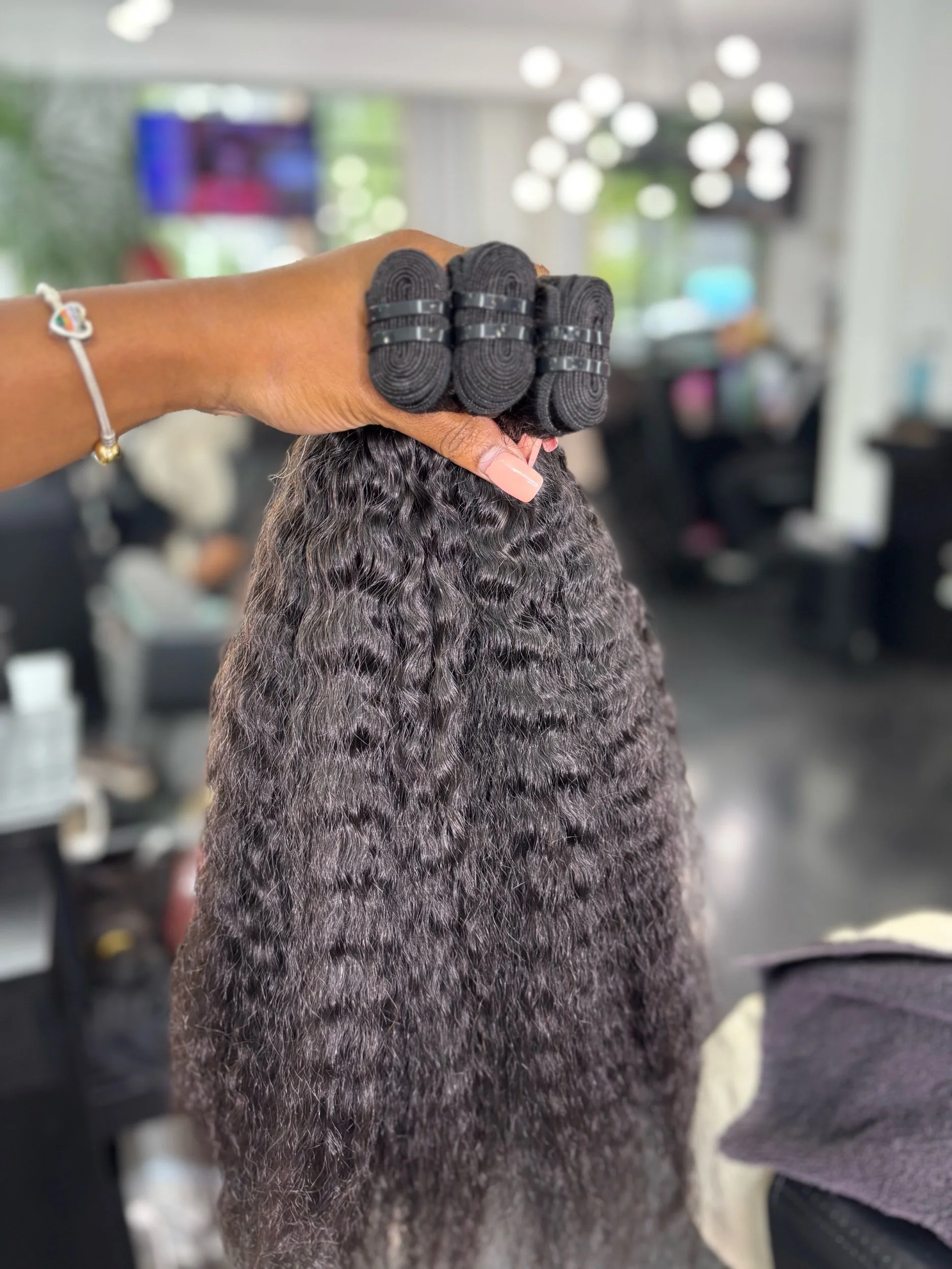 Our Cambodian Kinky Stright Bundles are 100% Raw, unprocessed human hair sourced ethically from Cambodia. These bundles are known for their coarse, full texture that perfectly mimics natural Afro-textured or blown out hair, making them ideal for those seeking a voluminous yet natural look. Color comes in natural 1B brown. Bundles lasts up to 1 year or more with correct maintenance.